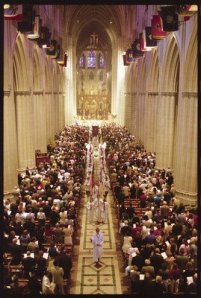 The National Cathedral is one very large important church. Your steps echo in the vaulted nave going down into the underground chapels and cloisters. There are stained glass windows and tapestries of King David. There are church groups who come here from around the world and sing before the altar of God. The voices sound out of this world. The cathedral has the best acoustics in the land.