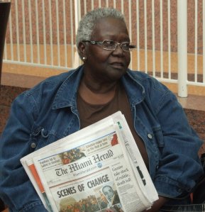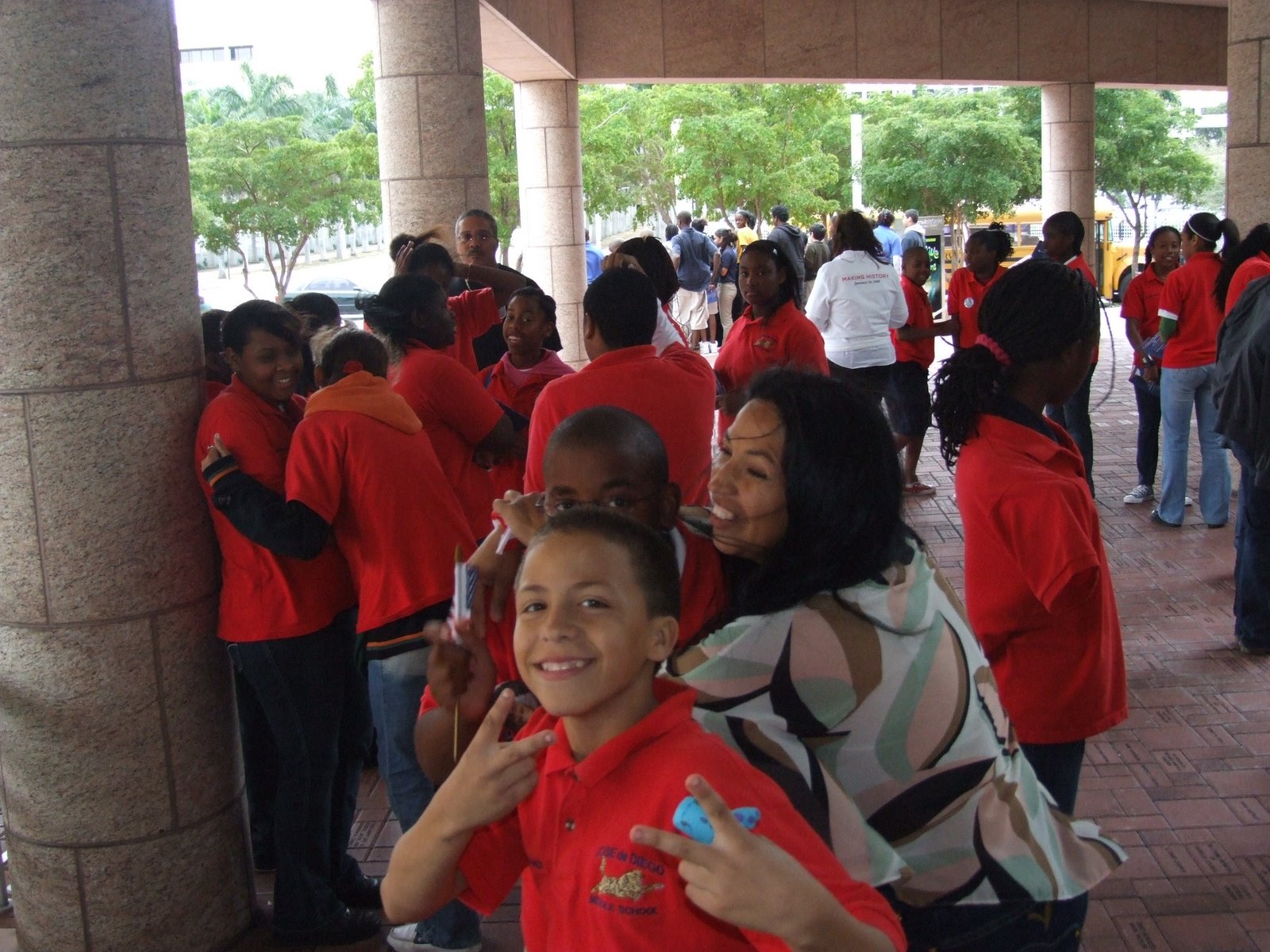 So I trekked downtown to the Arsht Center yesterday at lunch to watch the inauguration with 4,500 of my fellow citizens. I did so with my cousin / photographer, Rolando Gonzalez. Part of the festive atmosphere was attributable to a number of school children who had been bused in. I wonder how they’ll remember the day. Safe to say the event probably did not register as much yesterday, as it will when they look back and recount that they were there.
