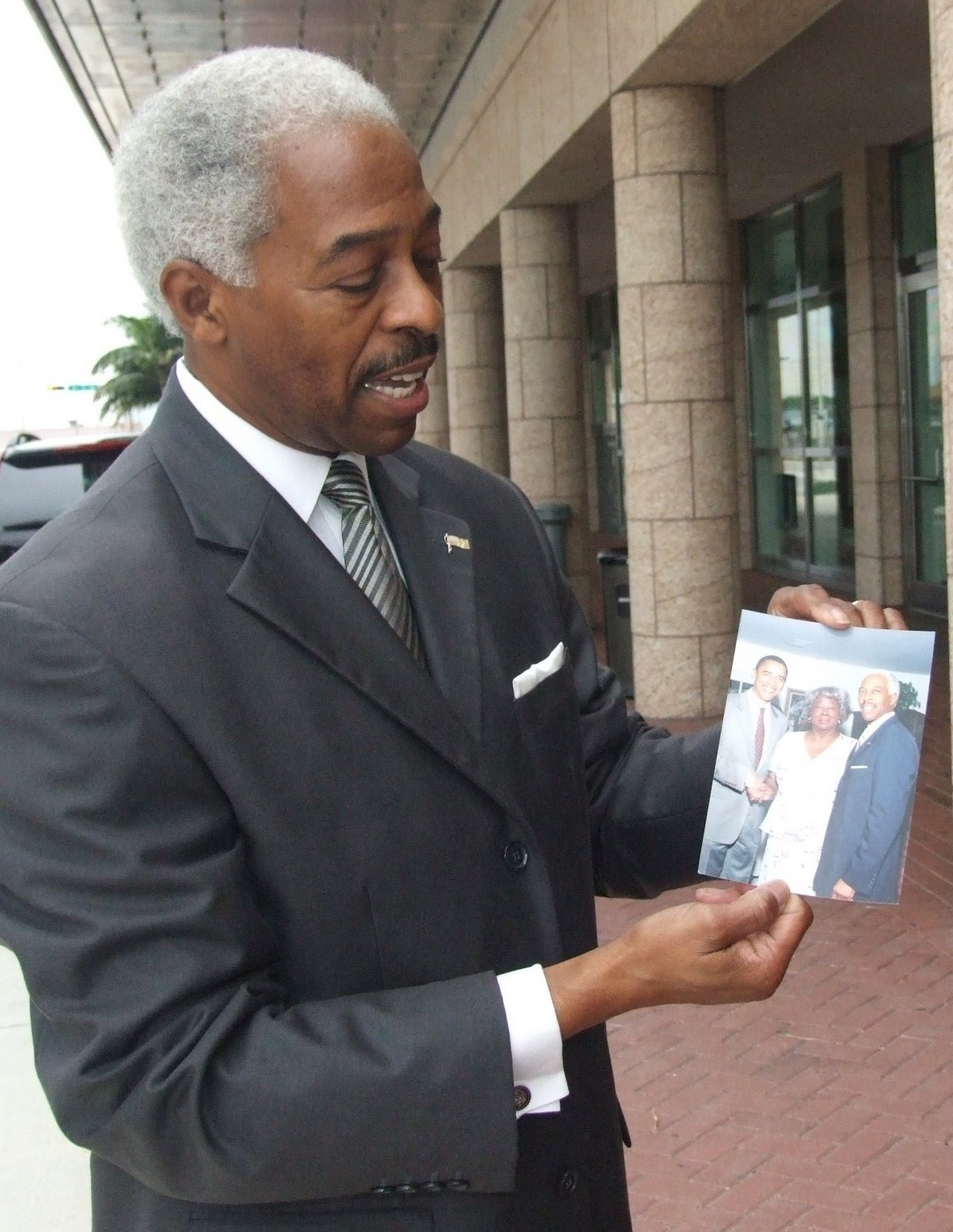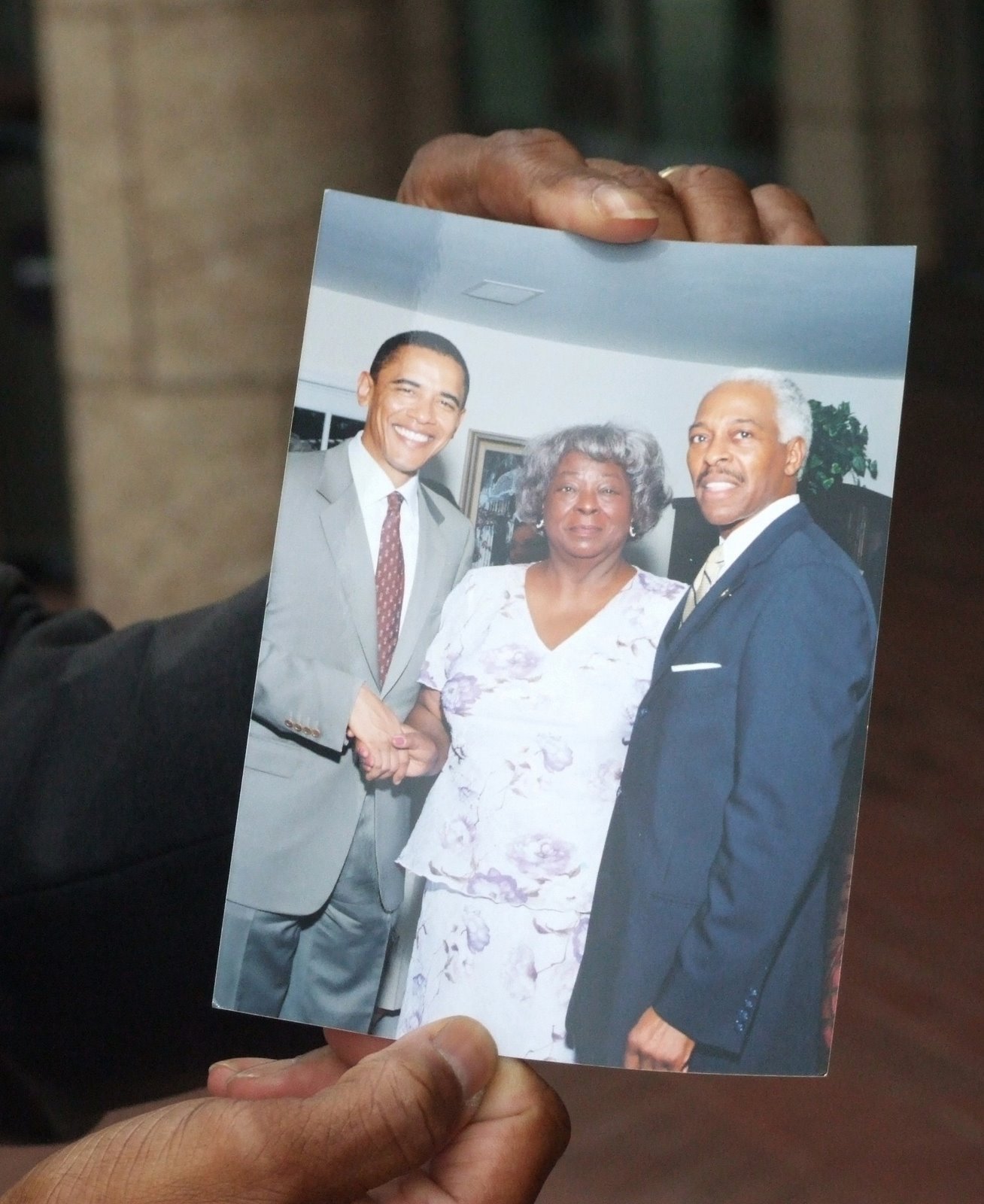 [Robert held up a picture taken with his Mom and Obama, back in 2005. Mrs. Beatty is now deceased, may she rest in peace–JC].