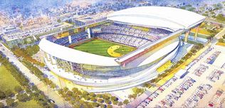 If approved Feb. 13, the partially glass-encased, 37,000-seat facility with a retractable roof would rise to face the downtown skyline from the Little Havana grounds where the revered Orange Bowl once stood.