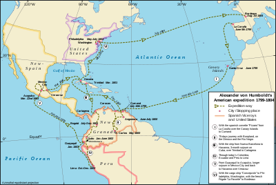 - 1799 – Arrived in Madrid, where the unexpected patronage of the minister Don Mariano Luis de Urquijo convinced them to make Spanish America the scene of their explorations.