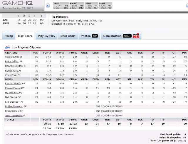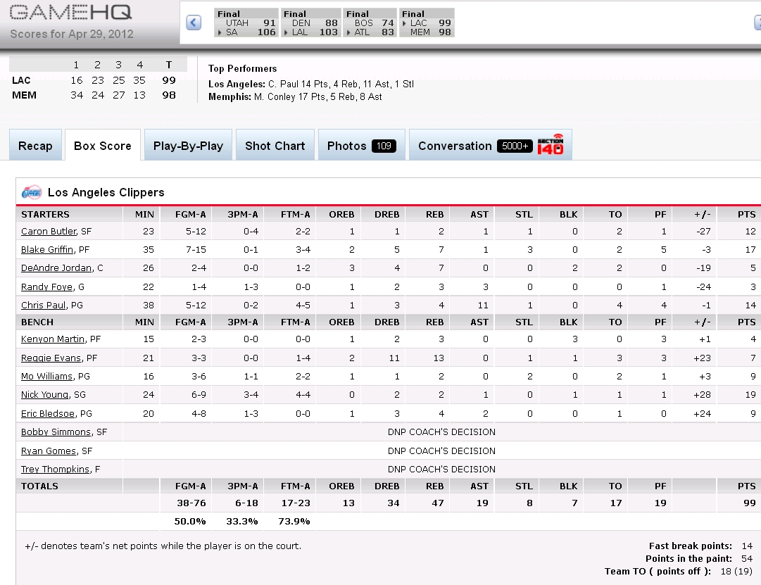 All other sports pale in comparison to the beauty of MLB boxscores, but the recent Clippers victory over the Grizzlies did produce one worthy of a ‘capture/screenshot’ due to the following:
