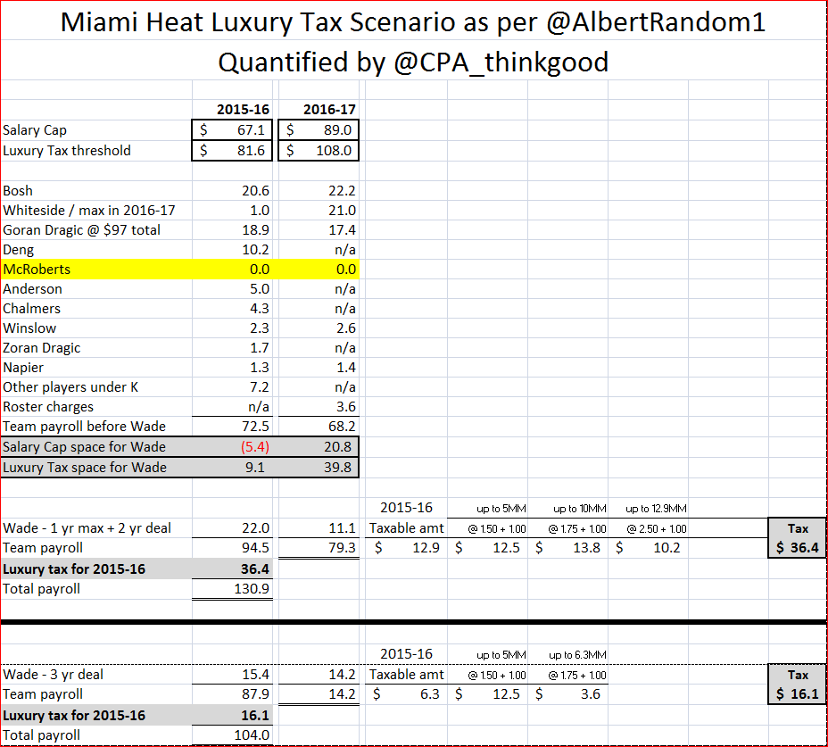 - The Heat must allow for a near maximum contract for Hassan Whiteside [$21 million] in 2016-17 as part of their Wade contract calculations for this season