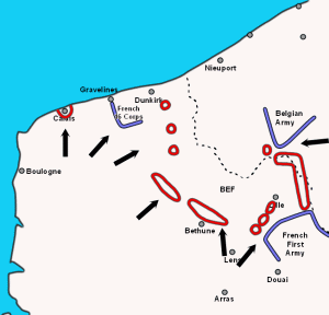 - With no alternative, 400,000 Allied troops lay pinned against the coast of Flanders near the French port of Dunkirk.